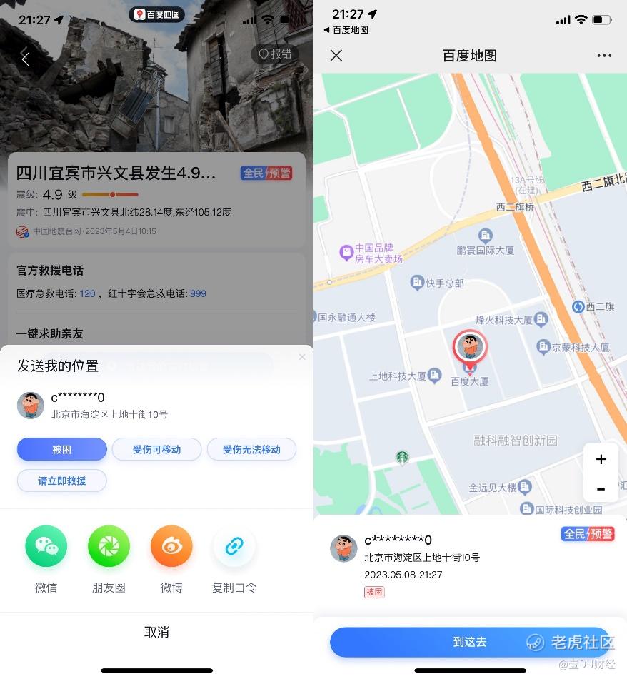 此外,对于在灾害事件中不幸被困的人员,基于自研“北斗高精”技术,百度地图“全民预警”服务,支持用户一键分享自身位置和当前状况给亲友。收到求助信息的亲友,可以通过百度地图APP实时掌握受困亲友的位置和状态,并及时帮助其对接救援信息。
