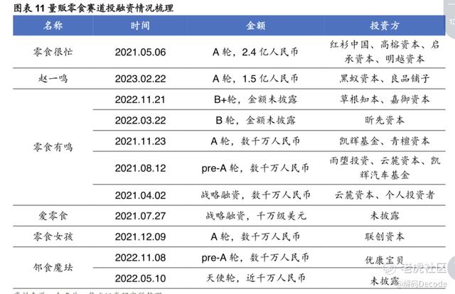 2021年至今,零食很忙、零食优选、爱零食等多家拿到投资,最新的赵一鸣于今年2月完成1.5亿A轮融资,由黑蚁资本领投、良品铺子跟投。