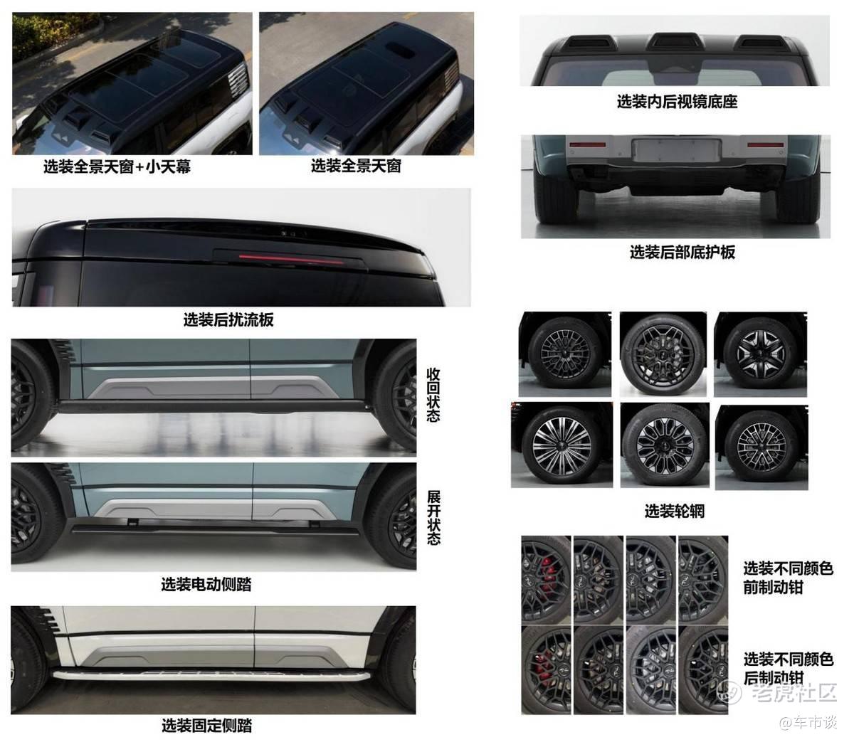 外观方面,从申报图来看,正式申报版的仰望U8与此前在上海车展亮相的外观相同,整体方正而有气势,车身尺寸为5319×2050×1930mm,轴距3050mm、整备质量为3460kg,无论“身材”还是“体重”都属于中大型SUV。值得注意的是仰望U8还可以选装牵引连接装置,包括拖钩及电连接头,准拖挂总质量为2500kg,为以后拖挂房车出行提供了便利。