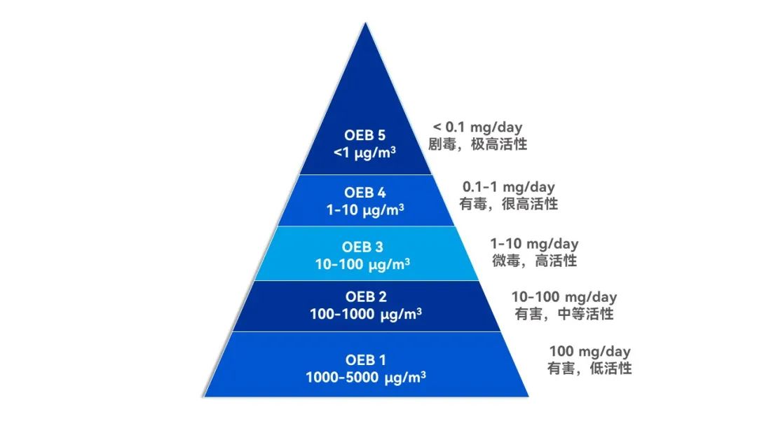一般来说,OEB等级为2级或者3级的化合物可以通过风险评估,采取分阶段生产并进行清洁确认;对于OEB等级为4级或者5级的同类产品应尽可能使用专用设备设施、一次性设备或者密闭设备进行生产,减少和避免对其他产品的影响。对于毒性未知但确信其具有潜在的高毒性的化合物,建议将它们归为OEB4级或5级。