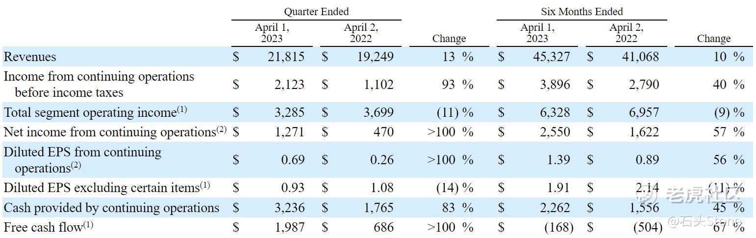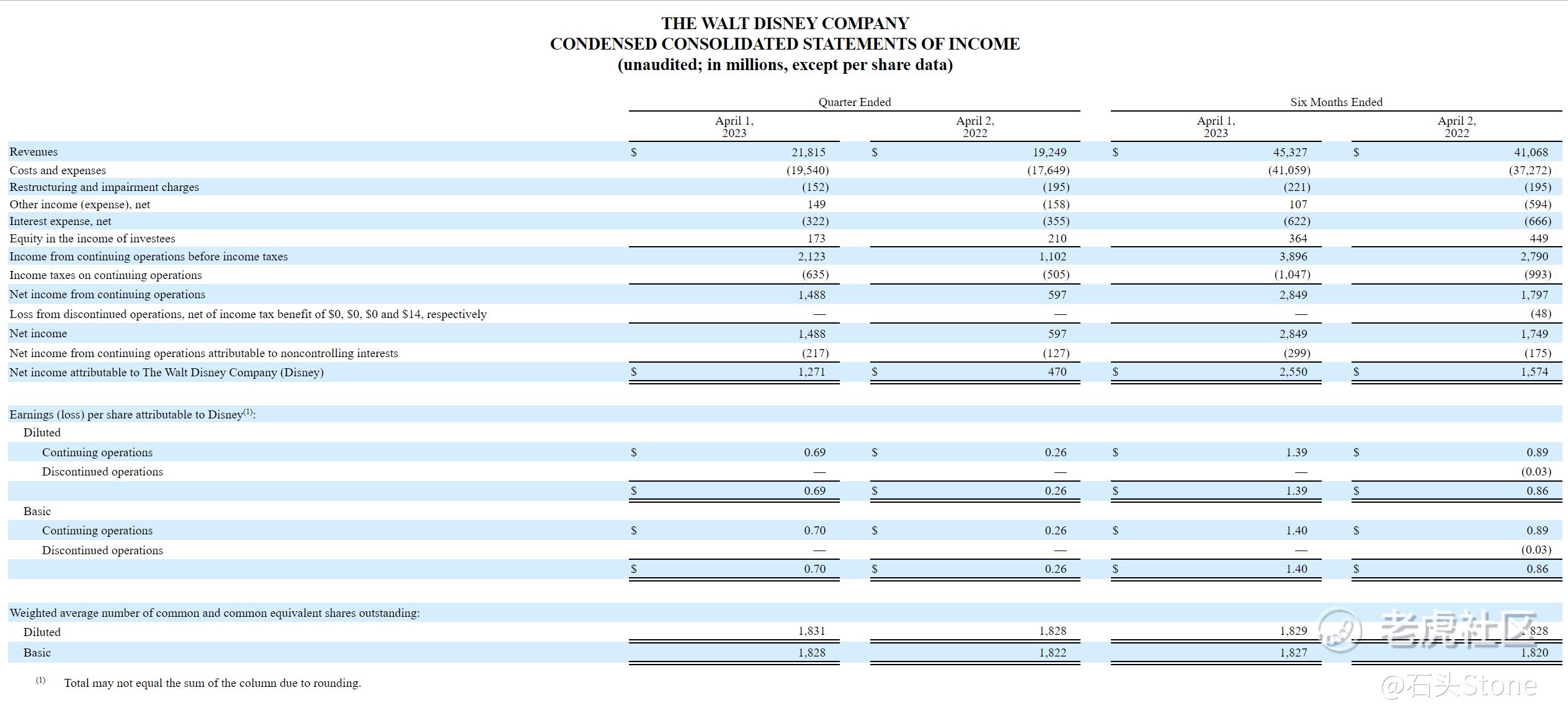 1、迪士尼公司财报财年周期与自然年不同,财报中标记为2023财年第二季度财报,为了方便观看和计算,后文中可能会出现2023财年第二季度、2023Q1与2023年第一季度,请注意。