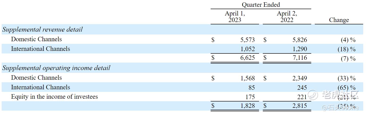 本季度美国渠道收入下降 4% 至 56 亿美元,营业收入下降 33% 至 16 亿美元。营业收入的减少是由于有线和广播业务的业绩下降。