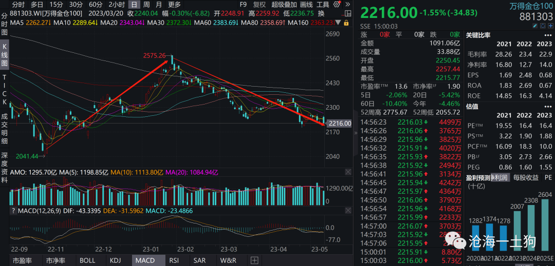 之后就是阳康之后,经济预期的新一轮上攻,万得金仓100指数来到巅峰,十年国债利率也来到了2.93%。