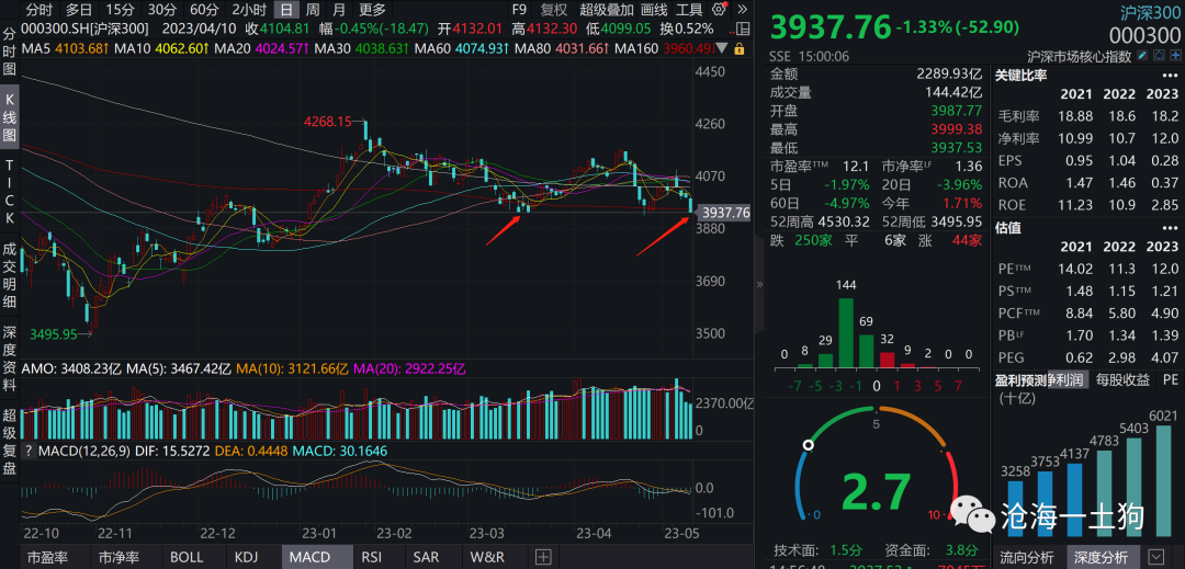 但是,股市尚未达峰,毕竟是不同的投资者群体,4月金融数据落地后,沪深300指数继续下跌1.33%,糟糕的现实继续带动股市的经济预期向下。