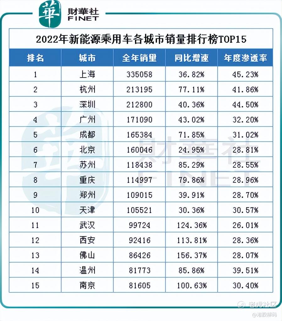 据悉,2022年新能源汽车上险量为524.49万辆,新能源渗透率为25.65%,比2021年增长了11.81个百分点。其中,上海销量最高,突破了30辆,其次是杭州、深圳、广州、成都等。