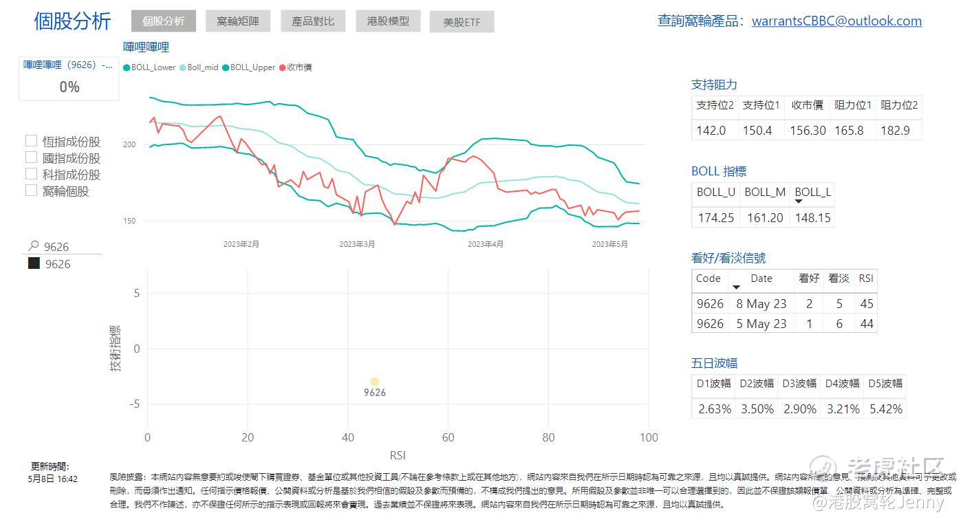 5月9日哔哩哔哩(9626)报150.9元,下跌 3.45%, 股价从全日低位150.2至全日高位 156.3,股价波动率2.16%。哔哩哔哩成交量较上日减少,股价录得下跌。