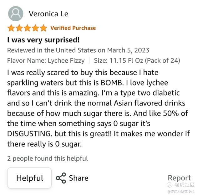 比如,在美版亚马逊上,有网友评价道:“我是二型糖尿病患者,所以一般不喝亚洲风味饮料,因为里面的糖太多;在50%的概率下,标着0糖的饮料是不好喝的,但这个很厉害,甚至让我怀疑是否真的0糖。”