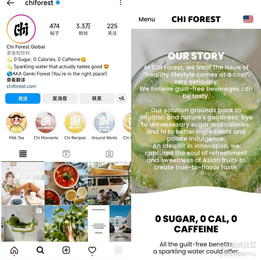 其中,元气森林的Instagram账号,以及美国市场官网,使用的名字都是“Chi Forest”。对此,有网友表示:“‘Chi’就是‘気’的音译,采用这个名字,更容易让外国人理解品牌。”