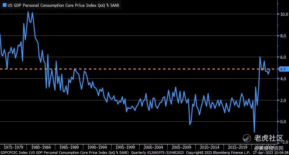 美联储最青睐的通胀指标——3月核心PCE物价指数增速符合预期,同比增长4.6%,仍远超联储目标2%,环比增长0.3%,连升两月;衡量薪资关键指标一季度就业成本指数意外加速增长,一季度环比增1.2%,市场预期和四季度均增1.1%。