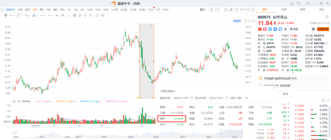 例如,银泰黄金在去年12月时发布公告称,最大股东沈国军将20%的银泰黄金股份转让给山东黄金,溢价率高达92%。虽然几乎接近翻倍出售,但银泰黄金在转让后,股价一度跌去30%。