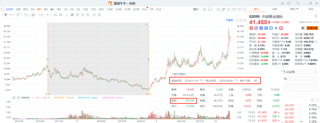 当然,港股和A股有流动性的差距。更好的流动性能带来更大的溢价是肯定的。但中金国际目前也仅有8倍pe,横向对比A股30倍pe的黄金企业来看,肯定是便宜过多的。不过也有港股估值更为理性的原因。