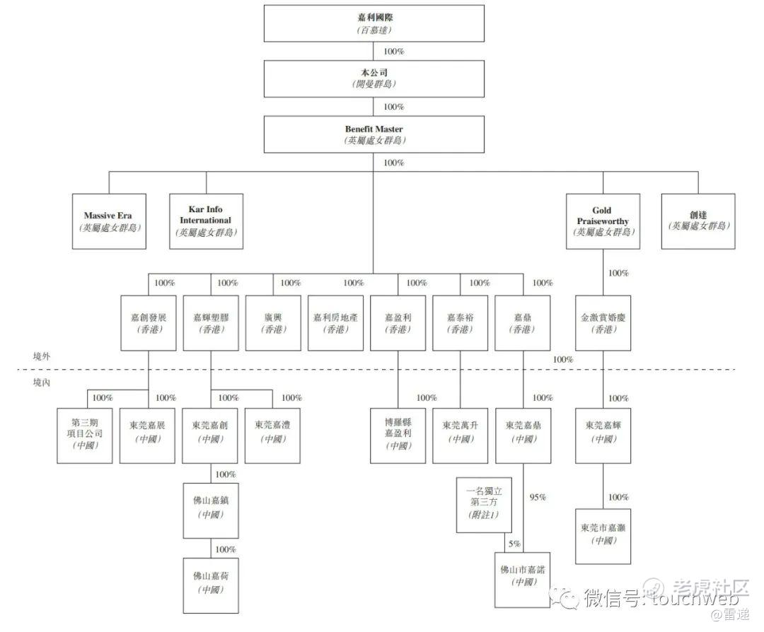IPO前,嘉利国际持有公司100%股权。嘉利国际为根基稳固的公司,已于主板上市逾25年。于分拆完成前,嘉利国际主要从事(i)五金塑胶业务;(ii)电子制造业务;及(iii)房地产业务。