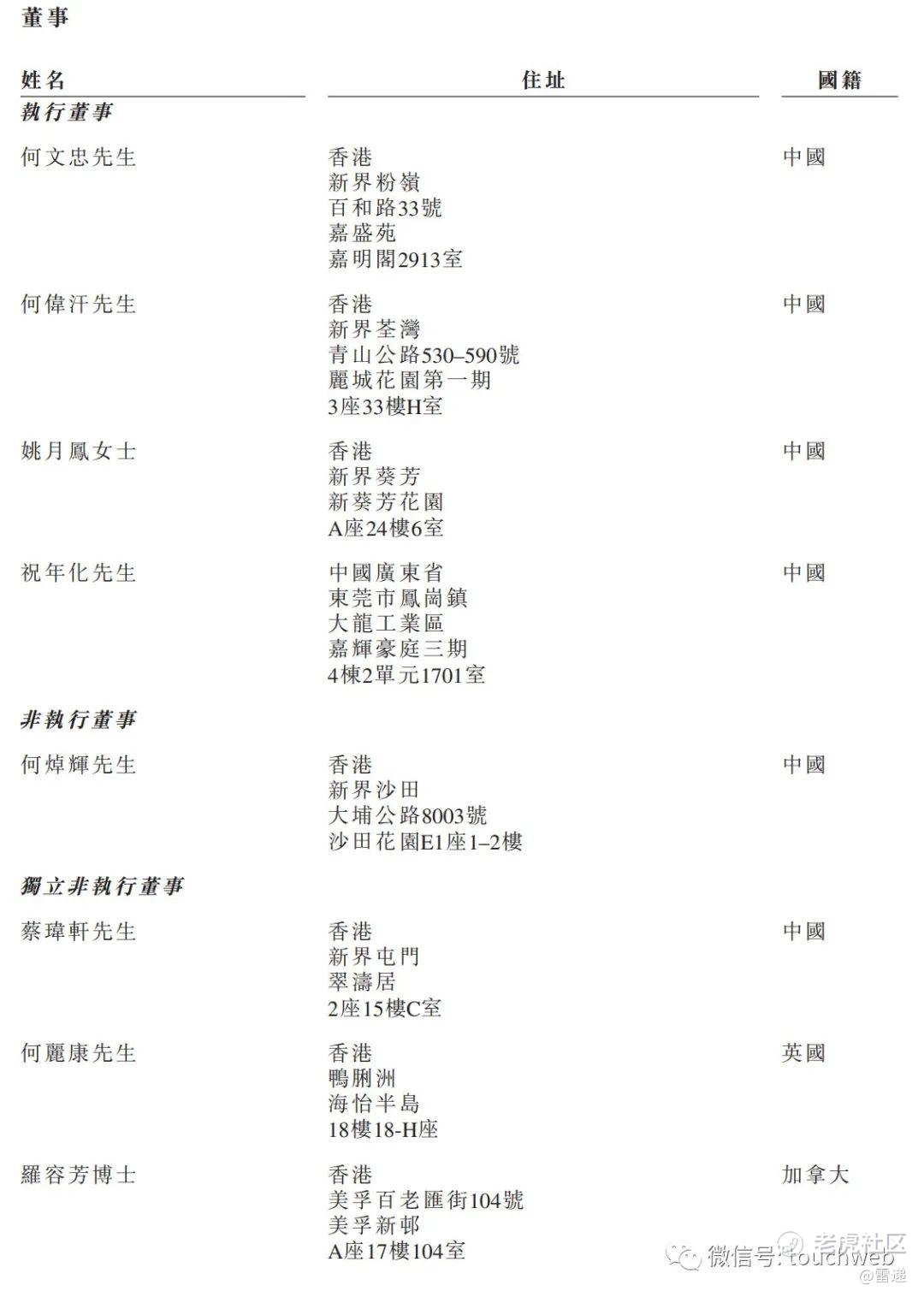 嘉创房地产的执行董事分别为何文忠、何伟汗、姚月凤女士、祝年化;非执行董事为何焯辉,独立非执行董事为蔡玮轩、何丽康、罗容芳博士。