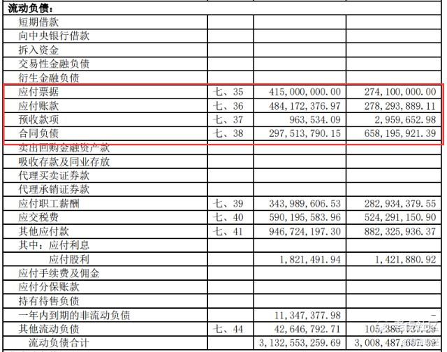 二是应付票据、应付账款、预售款项、合同负债这几类。
