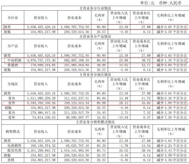 综上,舍得酒业的核心业务:中高档酒,以及占营收额大部分的省外区域,毛利率都在下降。
