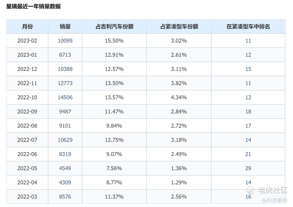 但新系统的加持似乎也没能提振车型销量。拿吉利星瑞举例,去年中上市的2023款吉利星瑞全系车型均搭载了吉利银河OS智能车机系统,但其销量仍旧与此前相差不大,并且在整个赛道上销量也一直未进入前10。