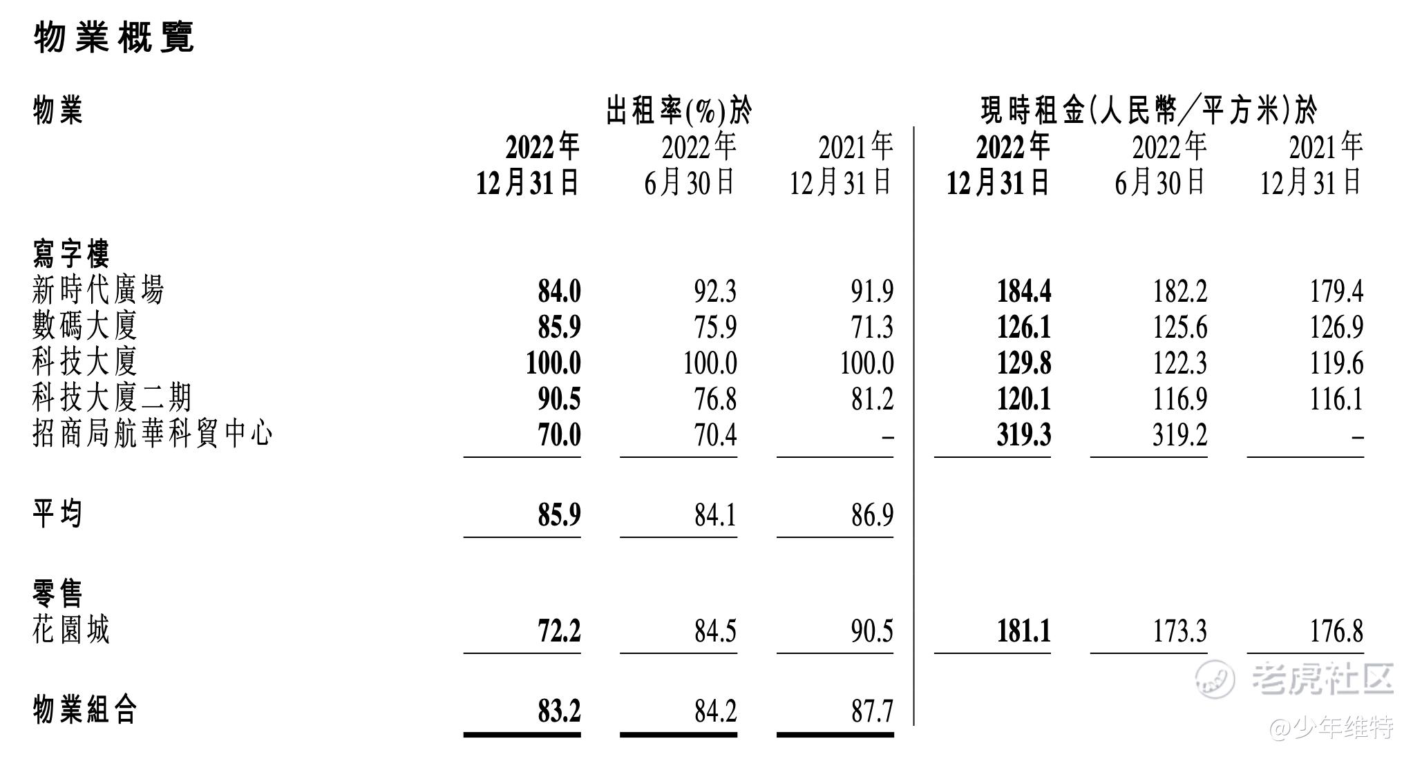 在收入方面,若不计招商局航华科贸中心贡献的人民币5520万元的租金收入,整体租金收入则同比下降13.4%。