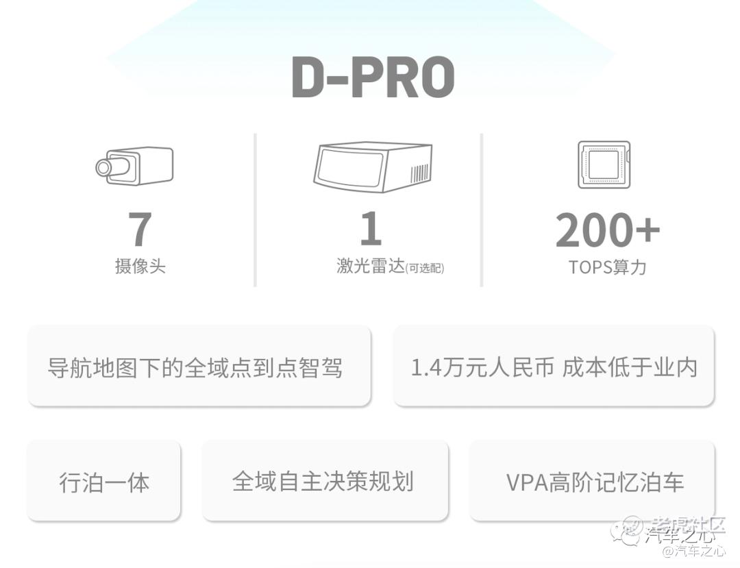 D-PRO 成本为 2000 美元,主打高阶智能驾驶;
