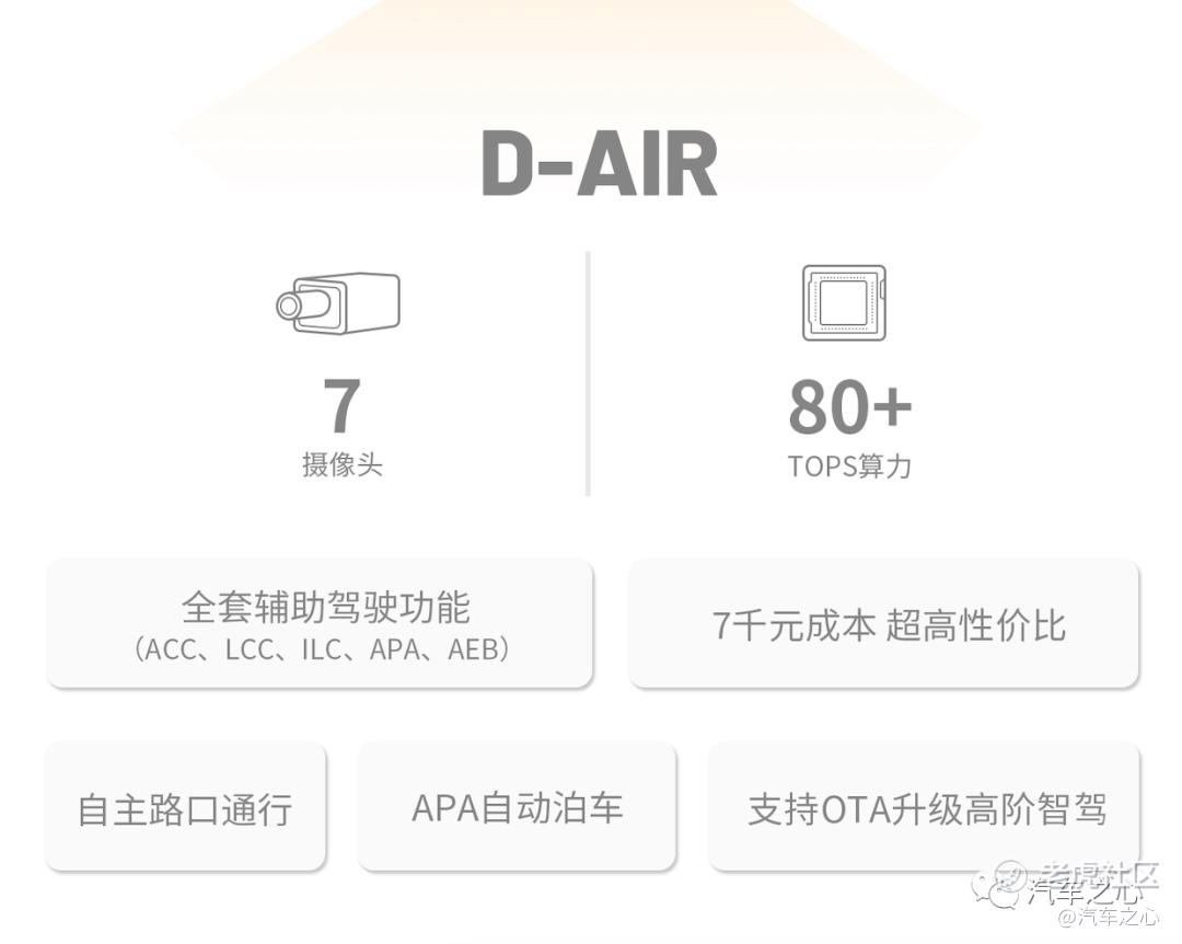 相比于 D-PRO,D-AIR 针对追求性价比的用户群体,在保证 L2+辅助驾驶功能的同时做到了千元智能方案,其成本仅为 1000 美元;