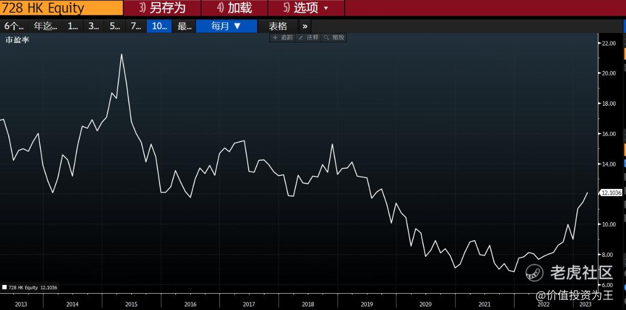 拿港股中国电信为例,目前的市盈率为12倍,接近近10年来的估值中枢:
