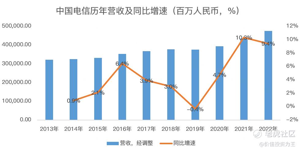 一是业绩稳定,甚至有所加速,如中国电信最近2年的营收增速回升至近10余年来的高位: