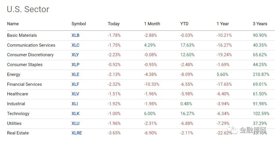 (1)美股板块涨跌幅