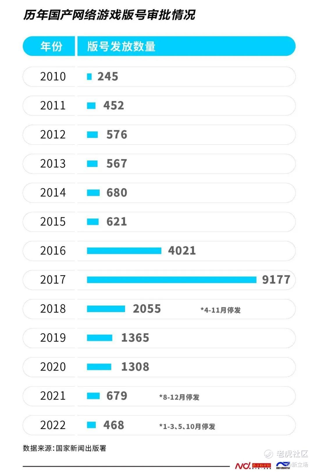 造成腾讯国内游戏业务当前颓势的一个关键因素,是版号批行的大幅收紧。从2018年第一次版号停发以来,国内网络游戏版号的审批数量连年减少:2022过审的游戏数量仅有2017年的5%。