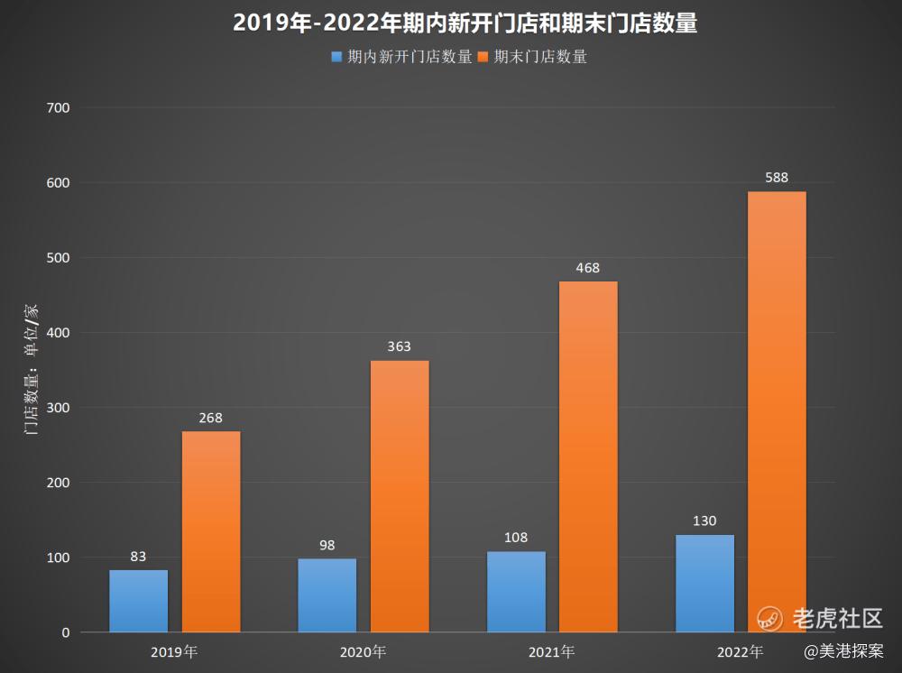 门店数量:根据招股书显示,旗下门店数量由2019年的268家增长119.4%至截止2022年12月30日的588家,复合年增长速度26.86%,公司在开店速度方面还是比较克制的,并没有走那种快速铺店模式,这样的结果就是能够保证开店质量,不过容易错失市场。