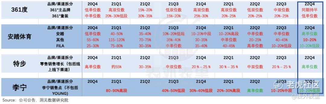 但效果不尽人意,可以看到,2022Q4一众国产运服品牌零售流水均出现了一定程度的恶化,而李宁的情况最棘手,负增速达10%-20%。
