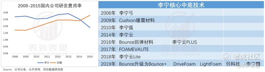 2015 年开始,安踏的研发投入后来居上。但过了将近6年,才有成果产出。