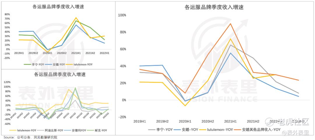 而从结果来看,Lululemon的收入确实在随着库存增加而增长;相比之下,李宁持续下滑的营收增速,有点不够看。