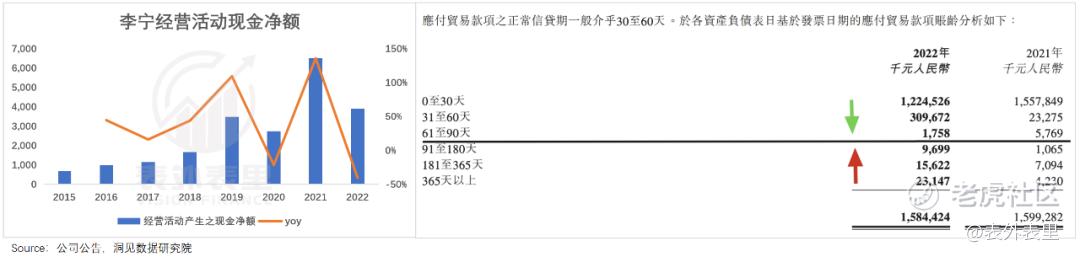 而销售的不给力,也将李宁经营活动现金流同比下拉40%,创下近7年来最大跌幅。李宁方面表示,这是“为支持供应商,缩短了应付的账期”。