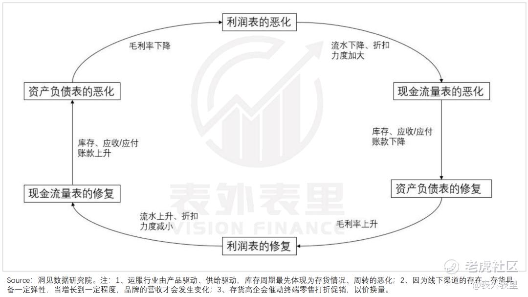 当然,深陷“危机”的不止李宁一家,《李宁安踏的“降价潮”》一文论述过,整个运服行业都面临“周期劫”,并且已进入利润表恶化阶段,只有改善库存才能进入修复阶段。