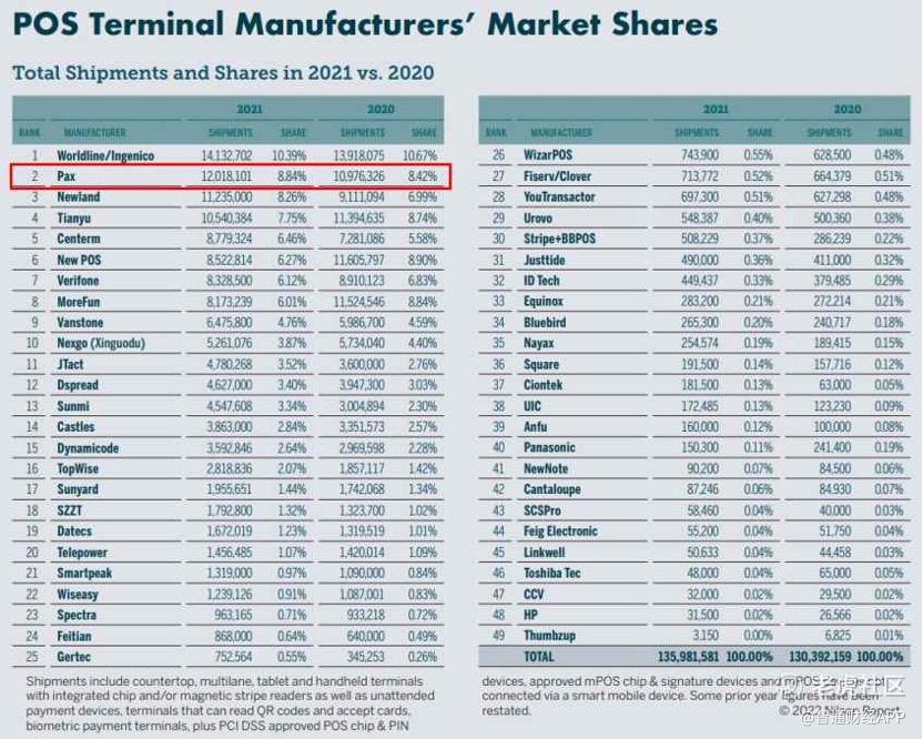 智通财经APP了解到,百富环球是全球电子支付终端解决方案的龙头企业之一,在120多个国家部署超过七千万台支付终端,业务规模稳居行业前列。根据国际支付报告Nilson Report 2022年10月期刊,百富环球已成功跃升为第二大全球支付终端供应商。