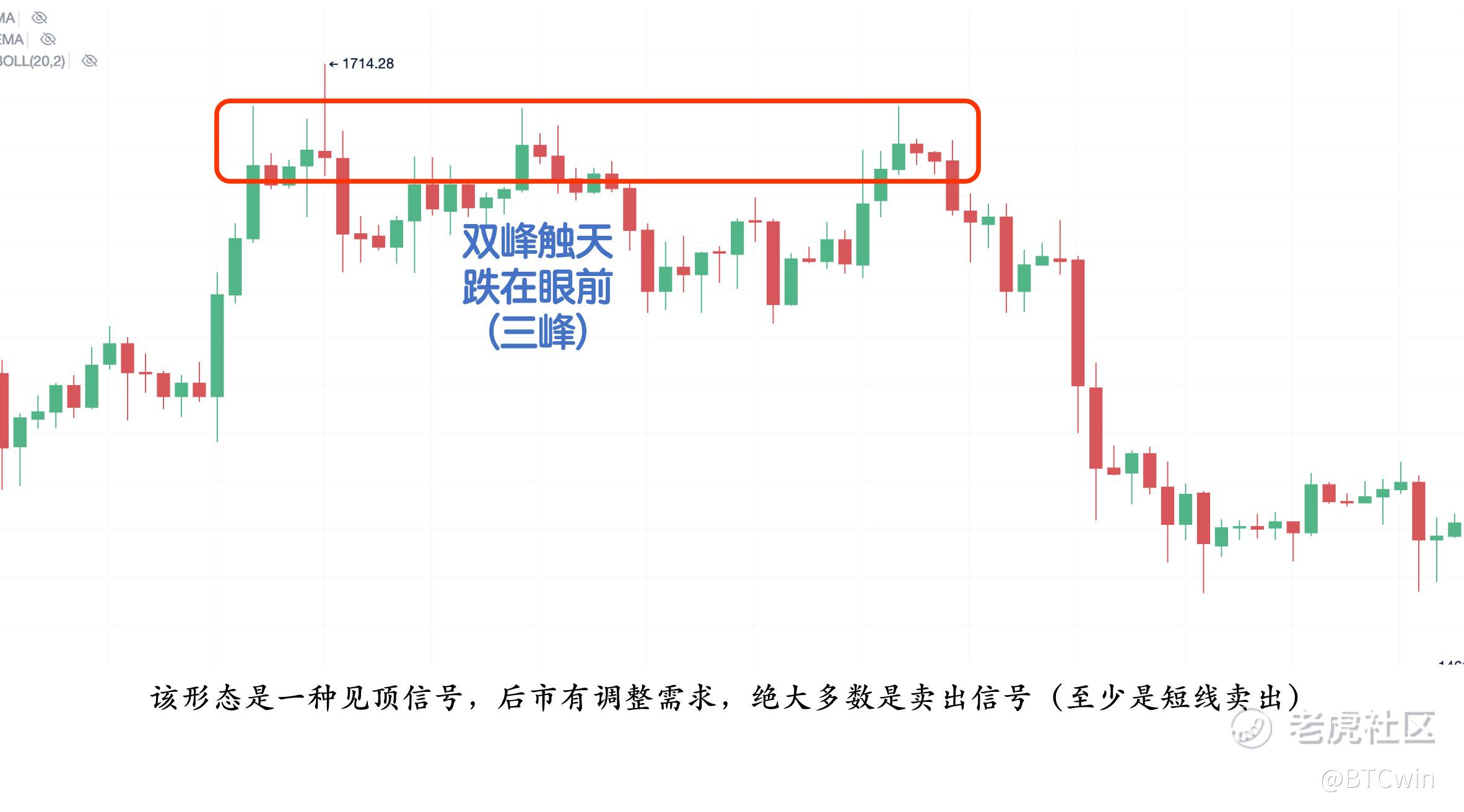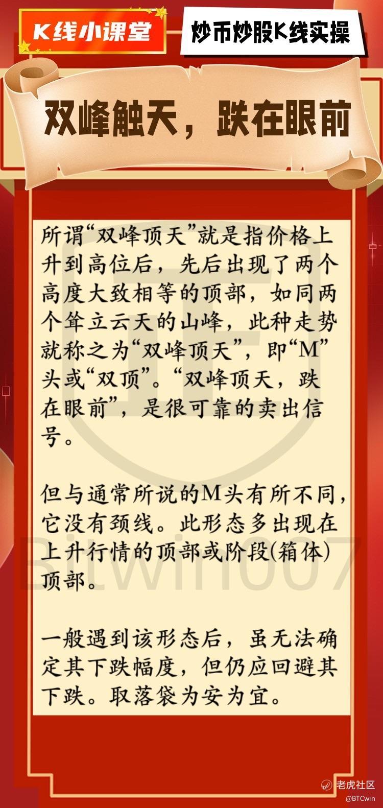 但与通常所说的M头有所不同,它没有颈线。此形态多出现在上升行情的顶部或阶段(箱体)顶部。