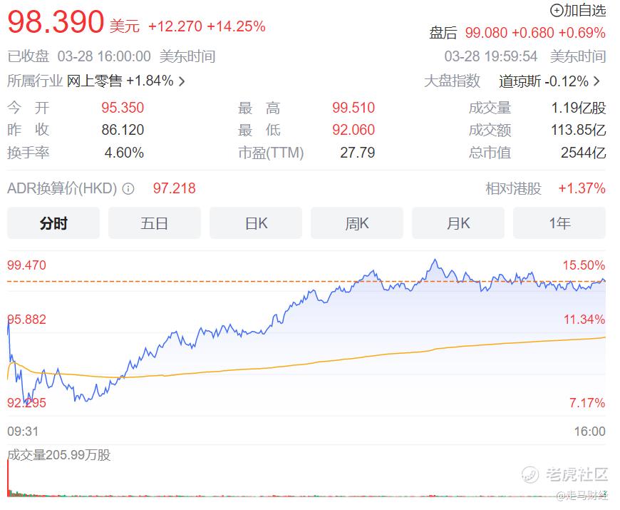 而资本市场对此也投下了强力的赞成票,阿里求变的消息传出后,其美股盘前大涨9%,截止3月28日美股收盘(北京时间3月29日凌晨),阿里股价暴涨14.26%,一夜劲升2000多亿元。