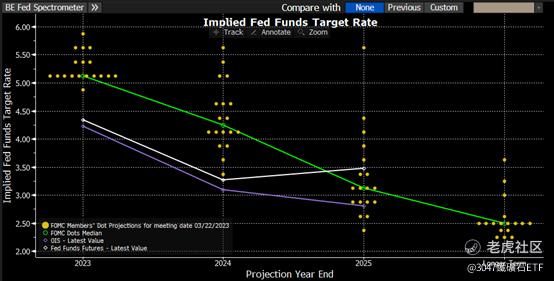 最近几个星期市场消息频出,矽谷银行 $硅谷银行(SIVBQ)$ ,signature bank $Signature Bank(SBNYL)$ 倒闭, First Republic bank股价大幅下跌,CS被收购,美联储一周扩表达2970亿美元紧急救市,紧随其后的是3月25日夜晚德意志银行股价大幅下跌,这些消息无不冲击著欧美国家。矽谷银行破产的原因我们已经在3月16日的文章《矽谷银行破产对市场有何影响》中详细解读,这些原因是美国大部分银行存在已久的问题,因此在矽谷银行破产后美联储反应十分迅速进行扩表。美国银行业普遍面临十分严峻的挤兑问题,因此不惜和美联储借高息贷款来应对危机。值得注意的是美联储这次扩表只是针对银行业的定向放水,扩表就是放大资产负债表,目前美联储的做法是通过两种方法,其一就是通过定向贴现视窗工具(用国债、MBS这类债券作为抵押,贷款周期最长为90天,利率为4.75%并随美联储加息情况而走),其二是BTFP(利率固定是4.7%,贷款周期最长为一年),这些贷款期限都不长,银行满足用户挤兑需求后,没有时间放债赚钱,之后更是难以负担美联储的还款但是总体上美联储还是在走缩表路线。总而言之,美联储现在的做法十分矛盾,美联储于上周加息25个基点,海外多家银行暴雷,整个金融市场似乎又出现了不稳定的因素。针对美联储加息的情况,除了关注FOMC的点阵图情况,还需要关注美联储对于经济的看法是否发生转变以及每次讲话的内容,我们需要揣摩美联储的用词还有语气,美联储的人都非常聪明,因此他们的发言以及会议纪要用词都会相当精准地表达出自己想要大家理解到的意思。观看点阵图,整体的情况是这样,看起来似乎较为鸽派,重点利率可能会在5%-5.25%这个范围内。在本次加息的一个月内市场的看法发生了几轮的变化,最终市场解读为加息25bp,跟美联储的决定一致。大部分官员认为还有加息25bp的可能性,但是5月会否实现我们不得而知,市场交易目前正在比较偏向交易层面的变化,综合各方面的资料,美国就业市场依然强劲,同时美联储下调2023年失业率预期至4.5%,上调美国今年通胀率预期至3.3%,这表明美联储认为通胀仍然会持续,但是衰退可能性降低,如果本次银行危机在近期逐步消退并且通胀高企,美联储可能会继续加息,但是如果危机影响到经济,美联储可能会停止加息甚至减息
