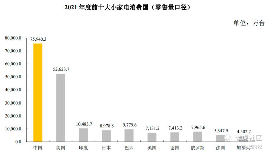 据Euromonitor(欧睿信息咨询公司)数据,2021年,我国小家电零售量为75,940.3万台,在全球排名第一。
