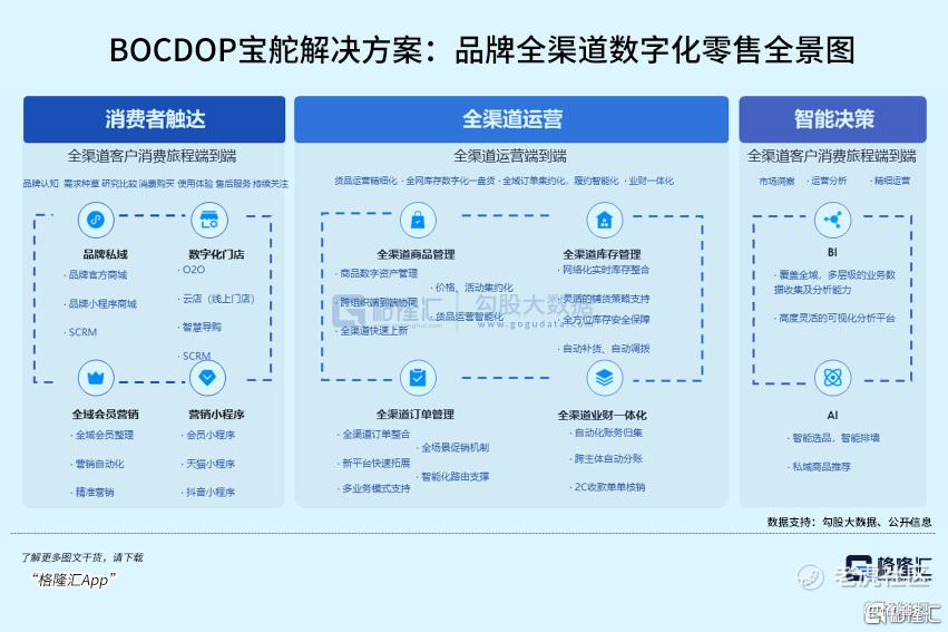 公开资料显示,该产品是专门服务品牌零售,以“业务+数据”双中台为基础,以生意结果为导向的全渠道数字化技术服务品牌。宝舵,整合了宝尊十余年来面向全球顶级品牌的全方位技术能力,可提供覆盖品牌端到端数字化业务的一体化解决方案。