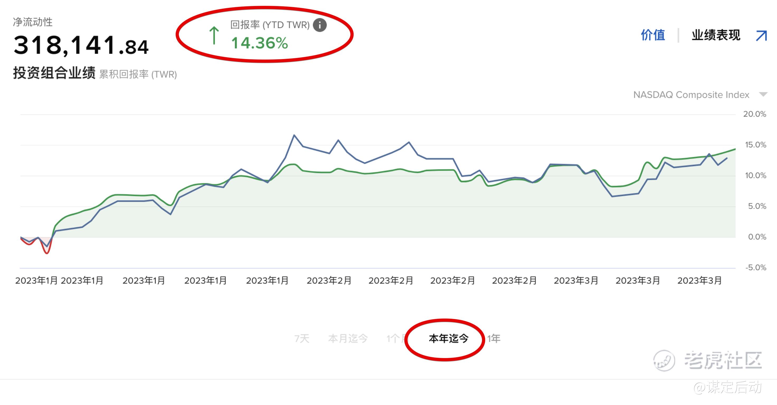年初至今盈利14.36%,略微跑赢纳指大盘的13%。