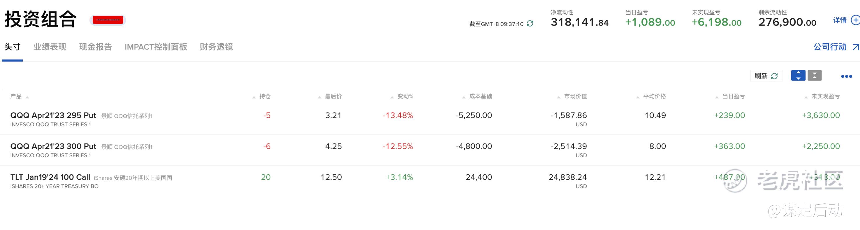 这个星期把抽走的部分资金又回补了,按照纪律,我加仓了6手行权价为300的SP。同时买了20手行权价为100的TLT美国长期国债ETF的LEAP CALL。