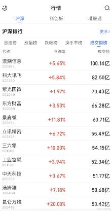 再来看看沪深两市的成交额榜,除了消费电子-立讯精密,其余清一色泛科技行业的人工智能、数字经济和半导体芯片相关。