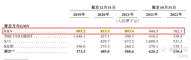 之所以盈利能力能不断提升,必然绕不开单店模型。更新后的招股书首次公开了集团旗下四大品牌的单店营收能力。从门店运营效益来看,四大品牌均处于较为稳定的水平。以占比近7成的KKV为例。KKV单店月均GMV从2019年的69.32万元逐年提升至2020年81.3万元及2021年的89.34万元,并在2021年前十月达到94.85万元的新高,而2022年前十月因行业整体压力降至76.23万元但依然高于2019年水平。