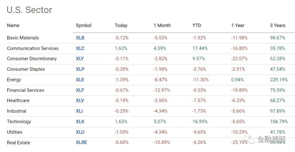 (1)美股板块涨跌幅
