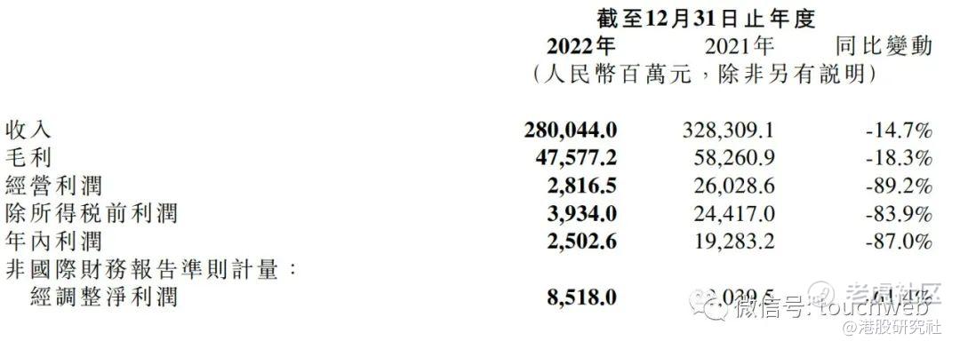 小米2022年经营利润为28.16亿元,较上年同期的260.28亿元下降89.2%;期内利润为25亿元,较上年同期的192.83亿元下降87%。小米集团2022年经调整利润为85.18亿元,较上年同期的220.4亿元下降61.4%。