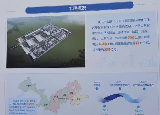 陇东-山东工程是服务黄河流域高质量发展的重点基础设施工程,总投资约202亿元。工程送端起于甘肃庆阳市的庆阳换流站,途经甘肃、陕西、山西、河北、山东五省,落点山东泰安市的东平换流站,线路全长926公里,额定电压±800千伏,输送容量800万千瓦。