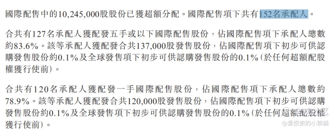 洲际船务国际配售总共152个人,有127人中签五手或以下,其中120人中签一手,7人中签二到五手,仅仅是25人获配五手以上。即便是这样,前25大承配人还都拿走了99.89%国际发售的货。