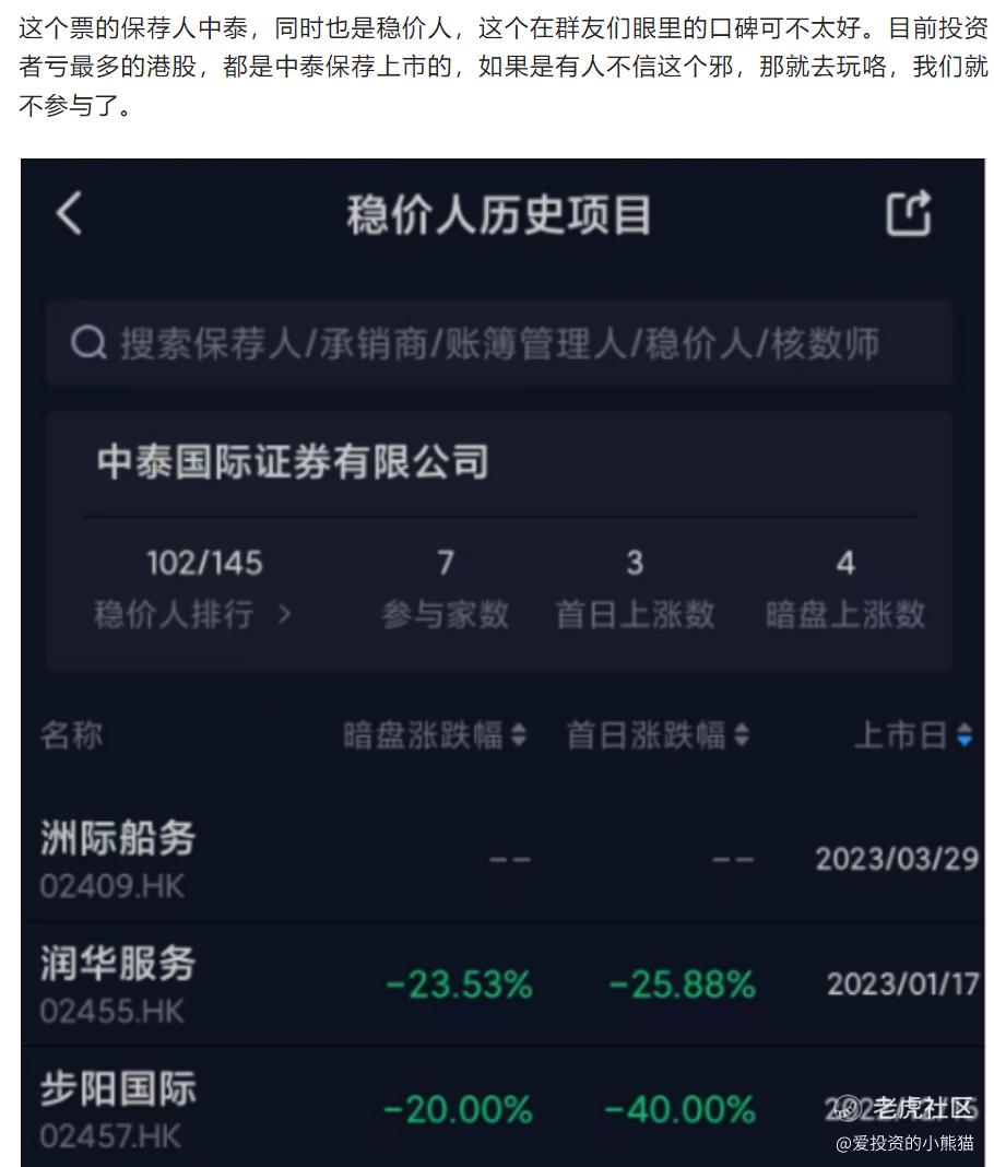 这个票的稳价人是中泰国际证券有限公司,有绿鞋3350.11万港元,跌成渣渣。