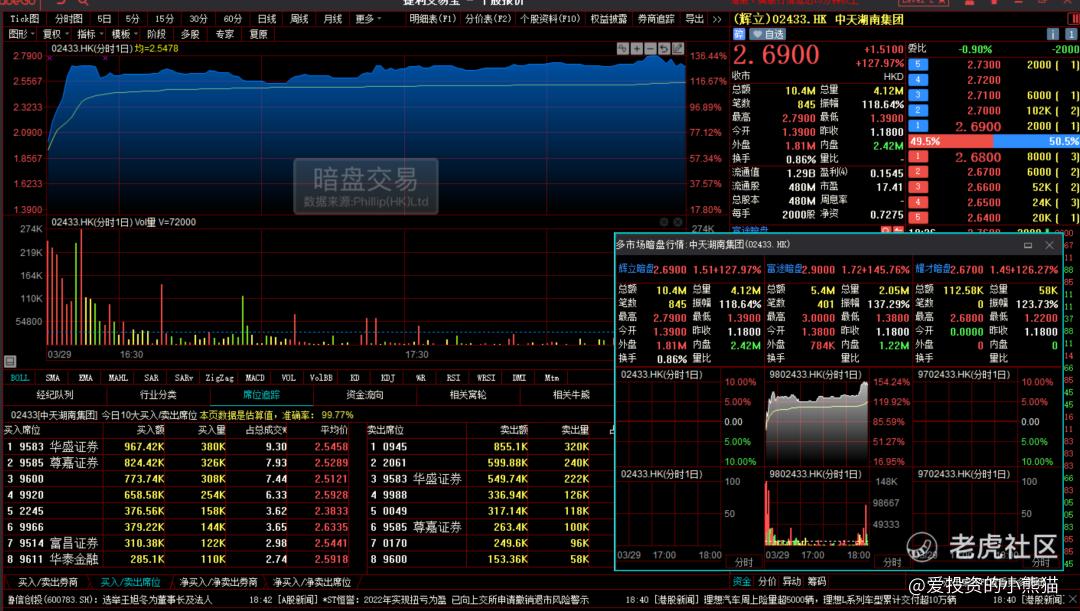 昨天的暗盘洲际船务其实表现还算不错的,最终收盘还涨了0.31%,尤其是开盘的时候,暗盘的9521席位直接在发行价的位置挂了500k的单子,横盘了大概半个小时,这单子慢慢都被砸掉了。