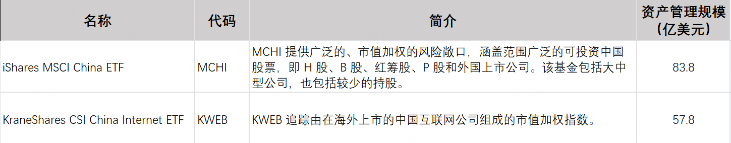 在美国上市的最大中概 ETF,规模84 亿美元的 iShares MSCI 中国 ETF (MCHI)上涨 3.3%,而规模第二大的中概 ETF, 规模 58 亿美元 的 KraneShares CSI 中国互联网 ETF (KWEB)上涨 4.3%。